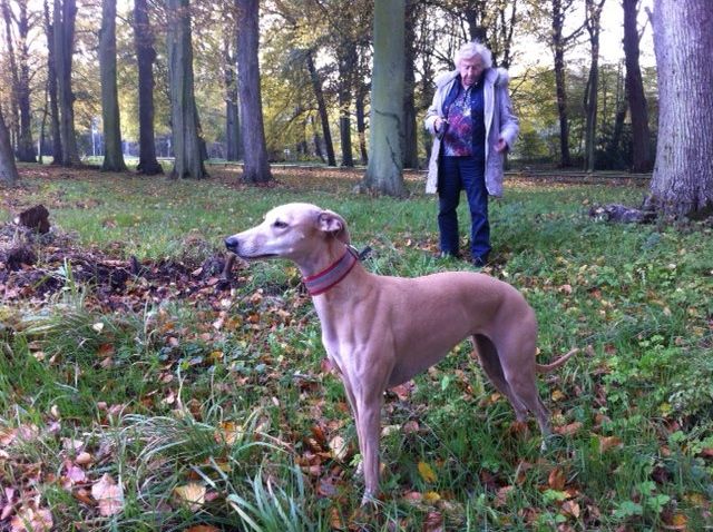 Vijf weken geleden had ik niet durven dromen, dat Hinde nu gewoon met mij de voordeur uit loopt naar de auto toe, en dat we een korte wandeling met z’n drieen zouden maken;
