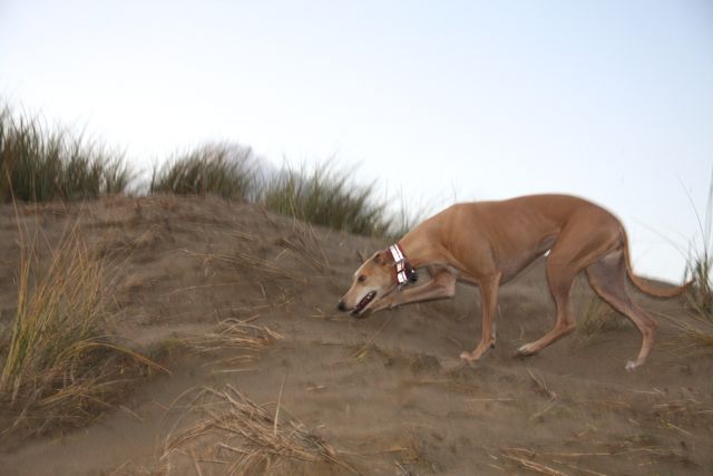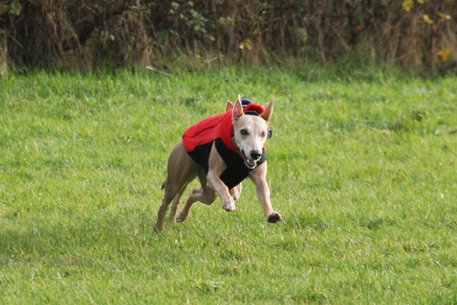 Ze rende af en toe blij in het rond en maakte aardig vaart;