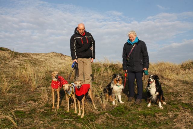 Na de vakantie was het tijd voor een project met een goed doel; mijn roedel kreeg tijdelijk uitbreiding in de vorm van Siro uit asiel Station van de Hoop in Spanje. Ik heb erg genoten van zijn vier weken bij ons, het waren intensieve weken waarin ik uitgebreid tijd heb kunnen besteden aan zijn socialisatie. Siro vond bovendien al snel zijn definitieve gouden mandje, bij Guido en Rosanna en hun whippetmannenroedel. Ik richtte in die periode de facebookgroep Gouden Lepeltjes op, waarmee we het asiel en de hierbij aangesloten Nederlandse stichting Spaanse Hond steunen d.m.v. het inzamelen van geld en materialen en het promoten van de adoptiehonden die door het asiel zijn gered uit het dodingsstation.
