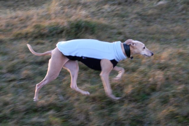 Een heerlijk whippetmeisje is deze Jewel-dochter, die vooral grote gelijkenis vertoont met haar oma van vader’s kant, Blue Spring’s Opera Queen, waar ik haar dan ook naar heb vernoemd (Salty Sand’s Aria for an Opera Queen).