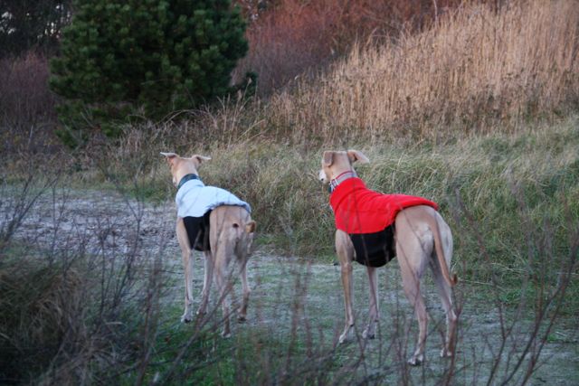 Op de terugweg naar Den Helder whipte ik nog even aan bij Leny en Jan, de eigenaren van Hinde’s nestzus Fenja. Links Fenja, rechts haar maatje Xiroff.