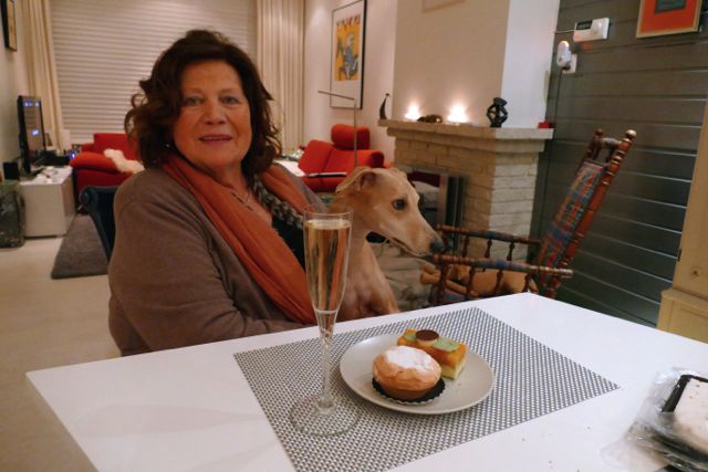 En de volgende dag vierden we ook de mijne; met 14 personen en 16 whippets over de vloer.