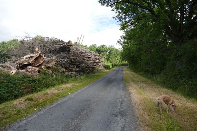 Het nadeel van Frankrijk is wel, dat bijna alle natuur van iemand prive is. Gelukkig was dit echt een heel stil gebiedje, zodat ik rustig met de honden langs de weggetjes kon scharrelen. Aan de uitloopriem; ik vertrouw die Franse jagers voor geen meter, het jachtseizoen was gesloten maar het knalde nog lekker om ons heen.