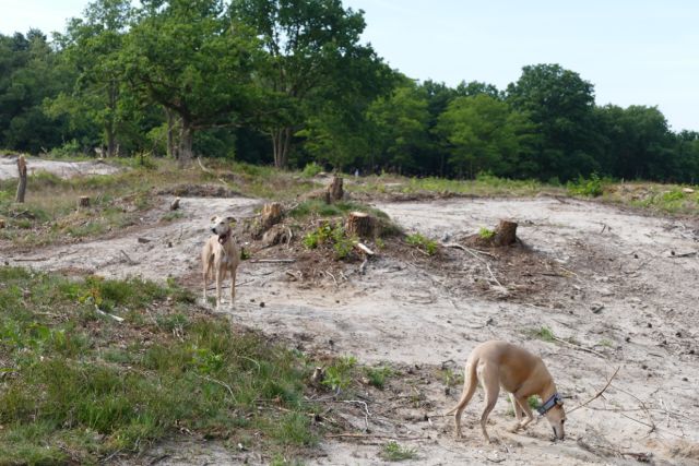 Hazel en Hinde vinden het een heerlijk gebied. Altijd op zoek naar de grootste stokken, vooral Hazel.