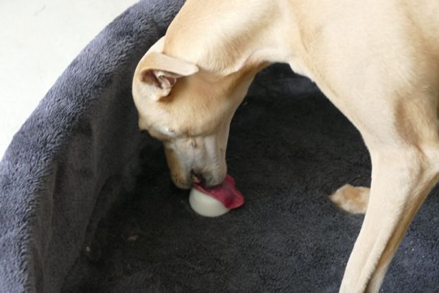 Ook al is het een paar graden koeler aan de kust, het was af en toe echt wel ijsjesweer; er ontstond een beetje een hondenijsjes hype op facebook en daar hebben we lekker aan meegedaan en ijsjes gemaakt van geitenyoghurt. Eigenlijk was dit gewoon hun gebruikelijke dagelijkse portie yoghurt, maar dan bevoren.