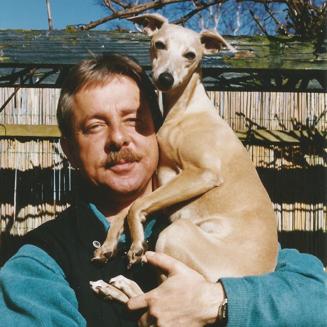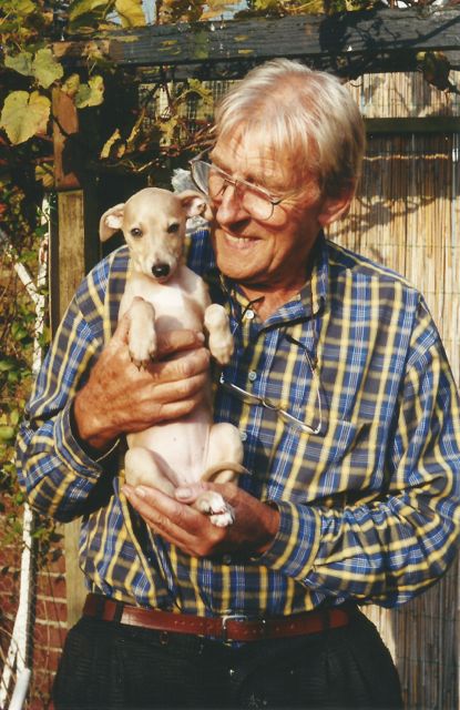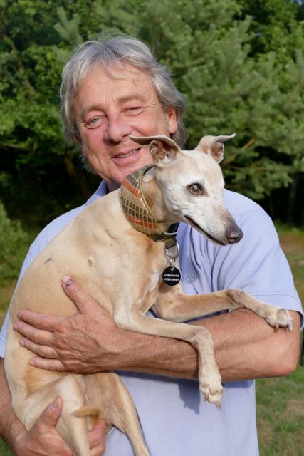Een whippetleven vliegt zo maar voorbij. Een foto van Ronald met Iesje in 2000.