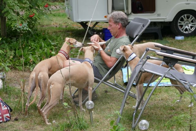 Isis is niet veel geshowd door mijn moeder, ze is een klein en compact teefje, maar mijn moeder bracht haar jaren lang ieder jaar voor op de kampioensclubmatch van de Ned. Whippet Club. In de ring zag zij er dan heel anders, heel elegant uit, en zij werd altijd bij de beste vier geplaatst, in – in die tijd vergeleken met nu – hele grote tevenklassen en onder zeer uiteenlopende keurmeesters.