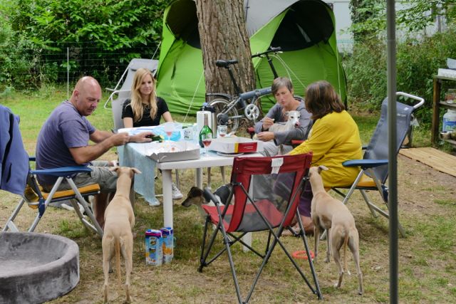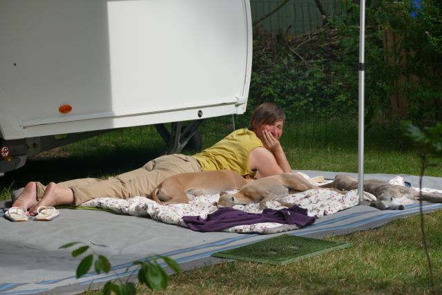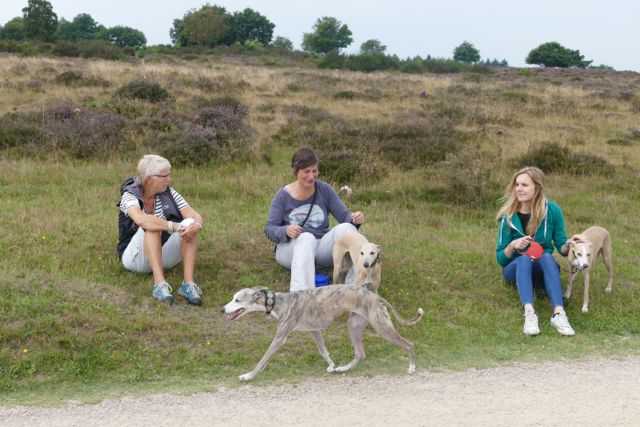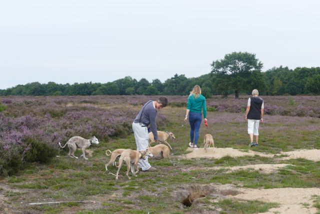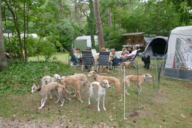 Isis’ eerste bezoek aan de renbaan, in Lelystad, met mijn moeder en ome Cor. Ze werd bovenop de heg gelegd om te kijken, en het duurde niet lang voor het muntje bij haar viel. Op de fundagen van de NWC beleefde zij veel plezier aan het coursen en rennen.
