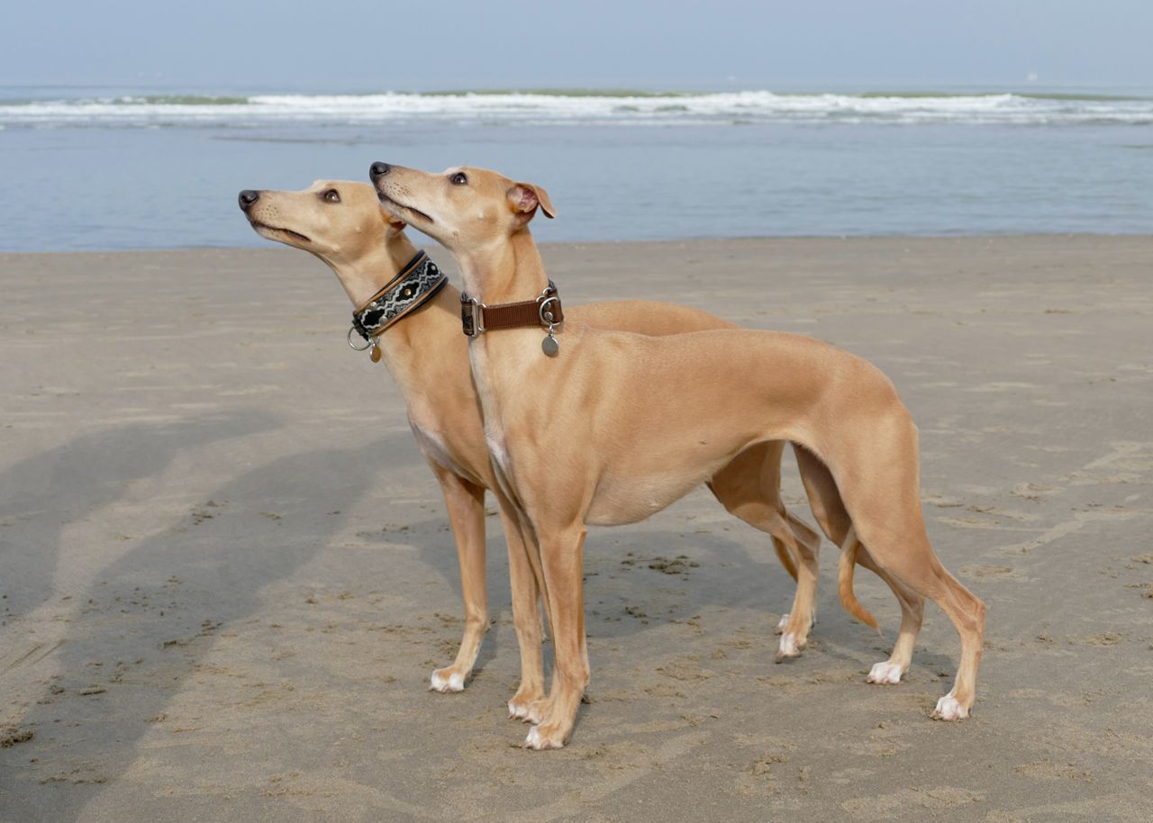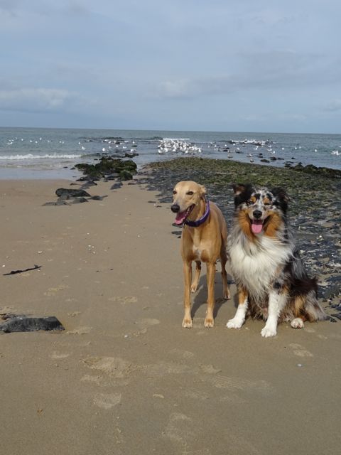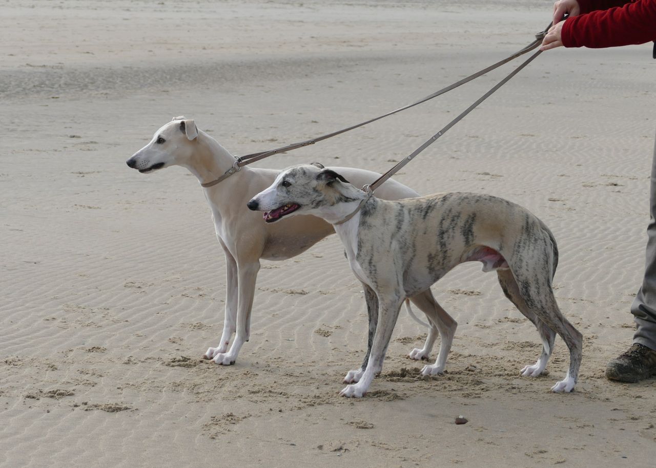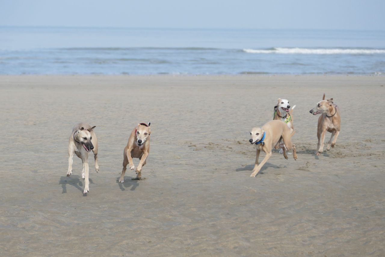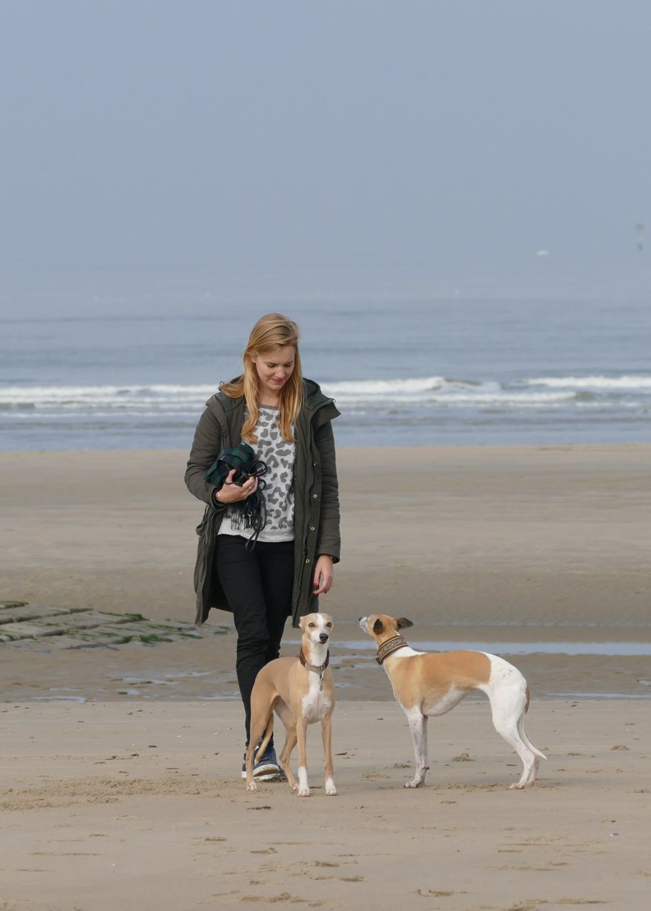 We liepen met 14 mensen en 20 whippets het zonovergoten strand op. Zalig weer was het, met veel zon en weinig wind.