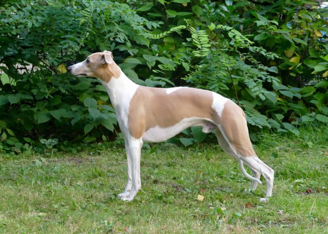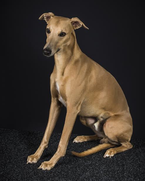 Virginie met een trosje whippets, vooraan Victor uit het nest van Dune.