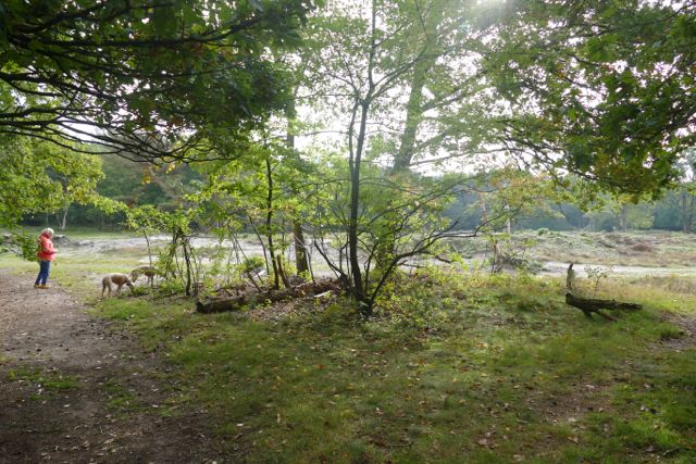 Ik had Hinde los, in de veronderstelling dat ze bij mij in de buurt ging blijven. Ze is net zwaan kleefaan sinds haar ongeluk. Maar ik had geen rekening met haar broer Maestro gehouden; hij en Hinde gingen altijd samen op jacht in de duinen, en Hinde was dus al snel met hem mee op pad. Tot groot verdriet van Hazel, die ik net aan de riem had gedaan ;>).