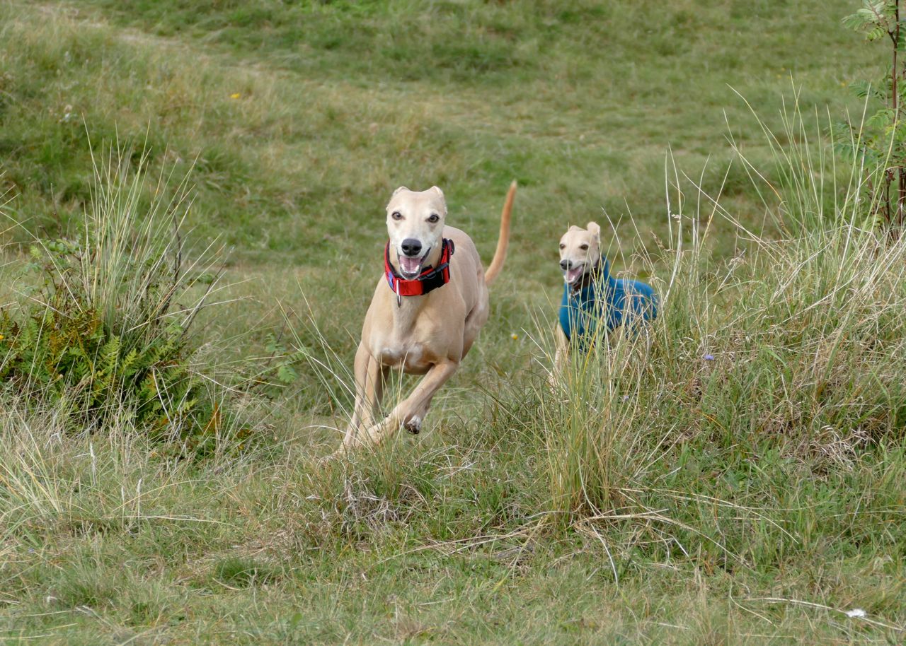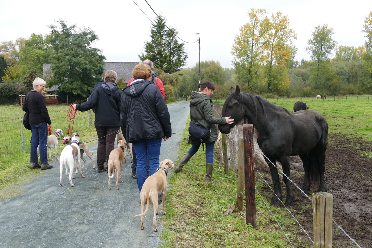 We kregen eventjes gezelschap van een enthousiaste grote whippetkruising.