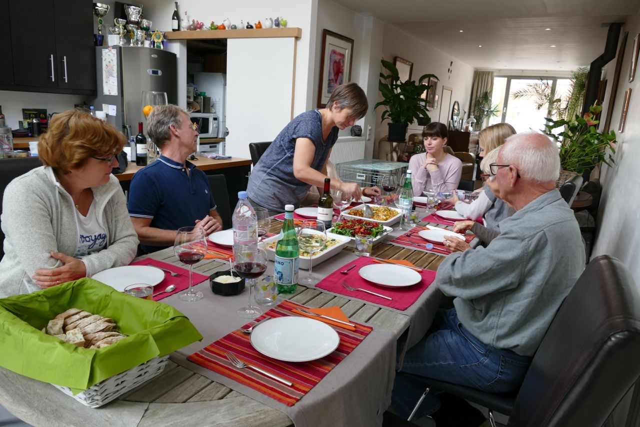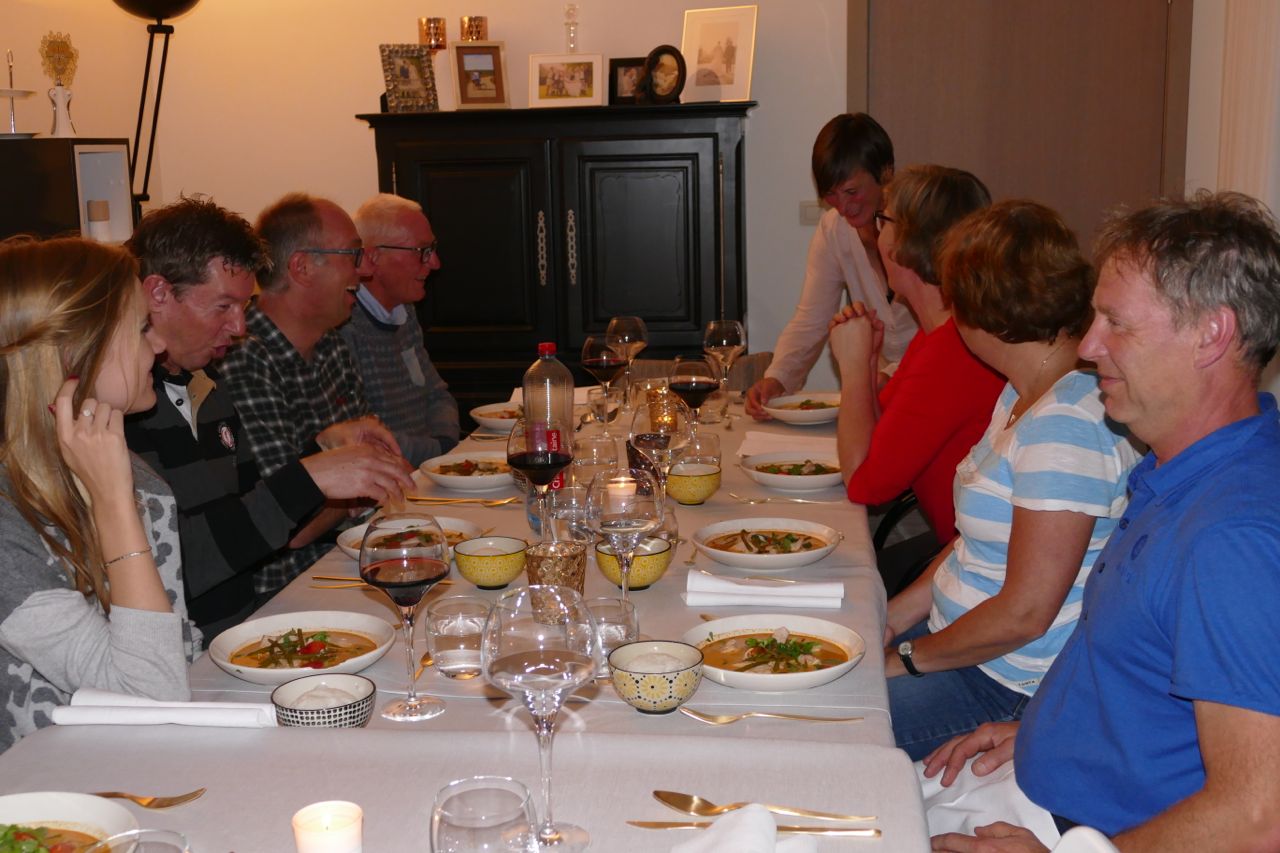 We genoten van Evelien’s Thaise curry. En van de champagne, de heerlijke rode wijn, de bijzondere voorgerechtjes en het heerlijke nagerecht.