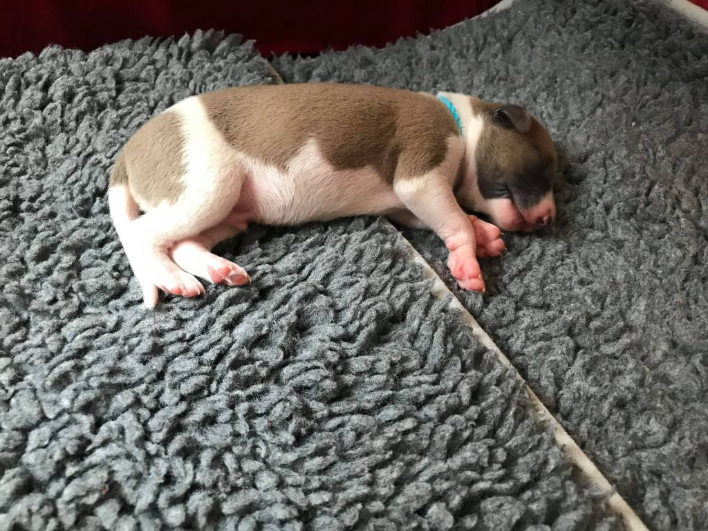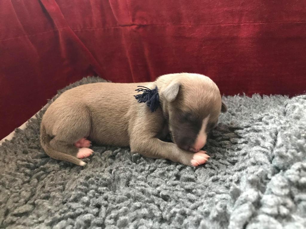 Van pups met een stamboom moet binnen tien dagen geboorteaangifte worden gedaan bij de Raad van Beheer voor Kynologie. Dan moeten ook hun stamboomnamen bekend worden gemaakt. We zijn altijd weken van tevoren aan het brainstormen over de namen. Traditiegetrouw kiezen wij voor Engelse namen, omdat de kennelnaam Engelstalig is en de whippet een Engels ras is. De roepnamen worden natuurlijk gekozen door de toekomstige eigenaren van de pups, daar bemoeit de fokker zich niet mee. Onze stamboomnamen zijn meer een “begrip” dan namen die je kunt roepen. Er steekt vaak een symbolische betekenis achter, of we vinden ze gewoon mooi ;>).