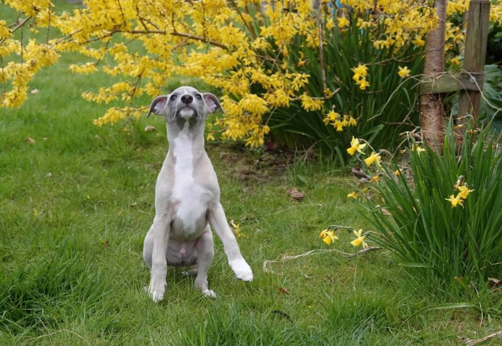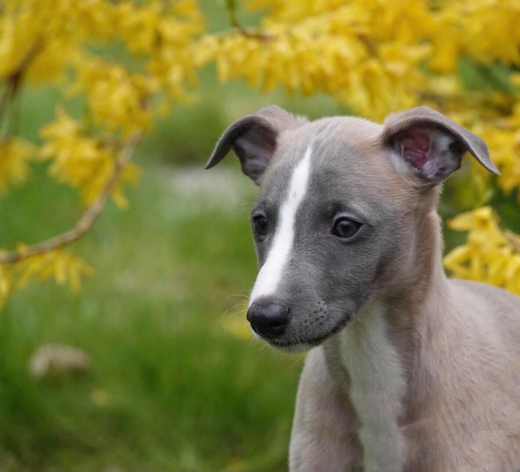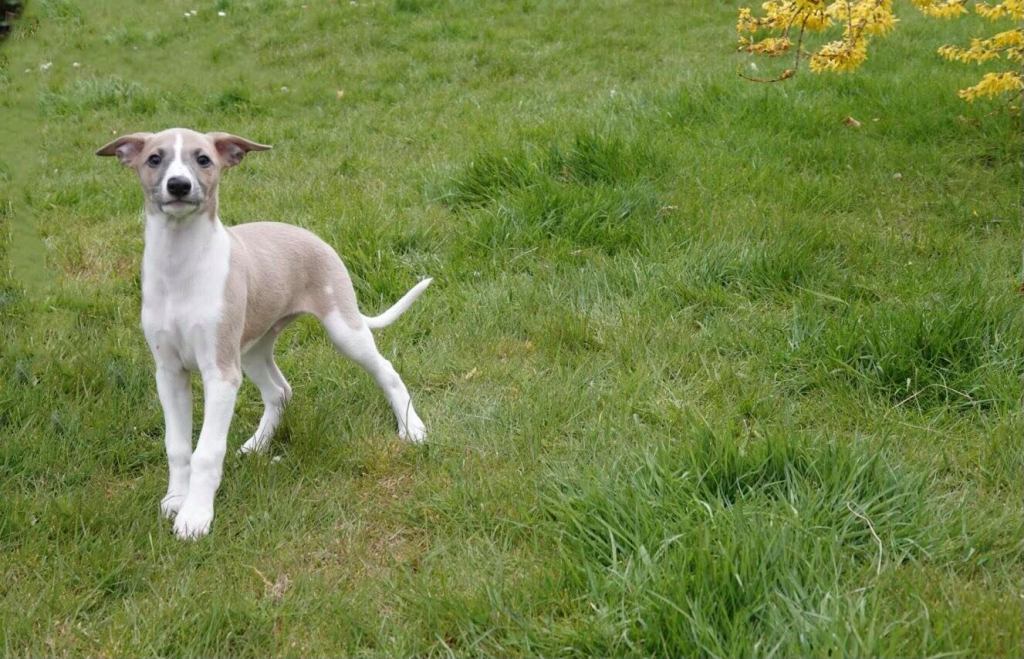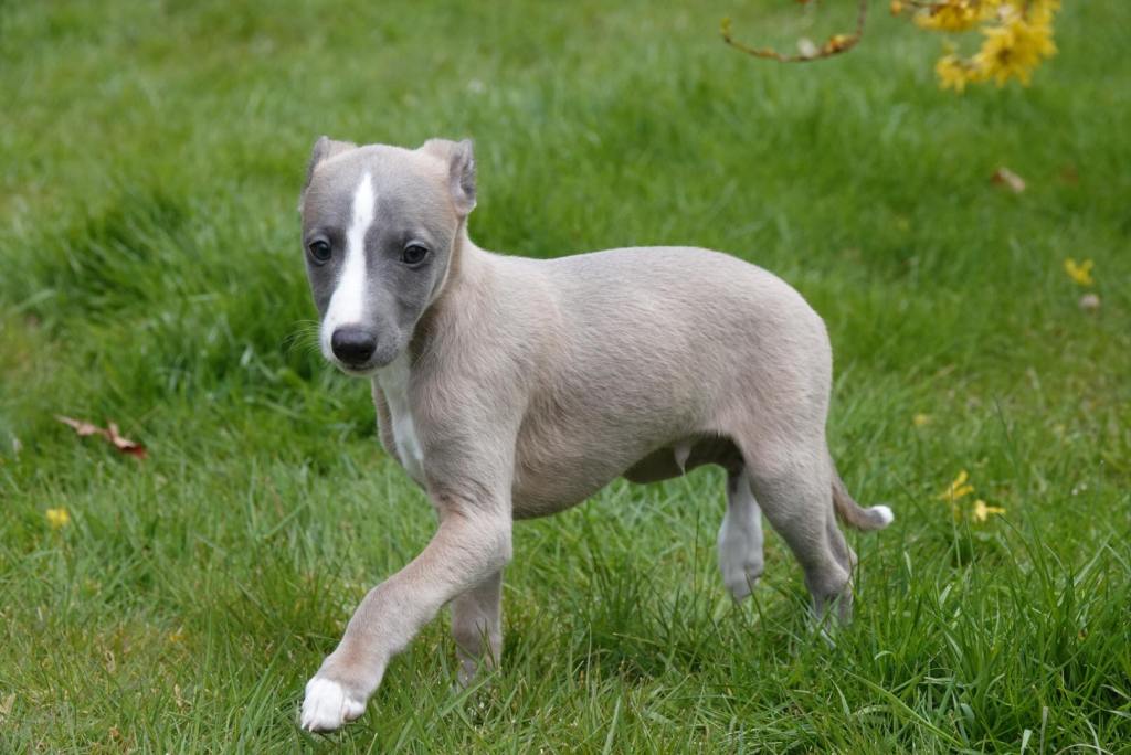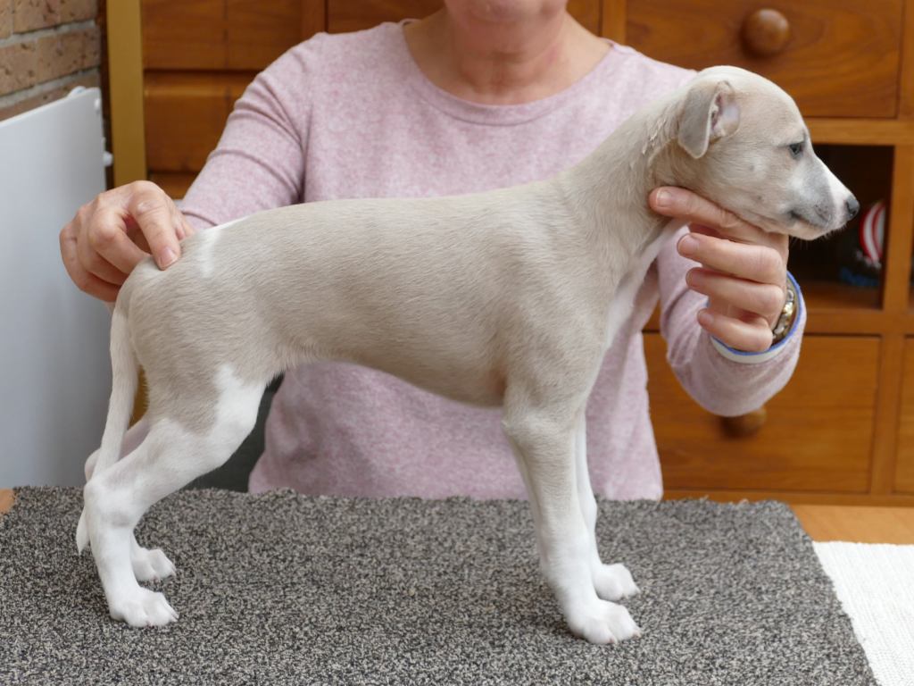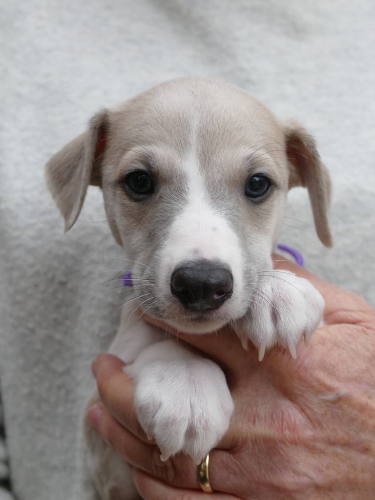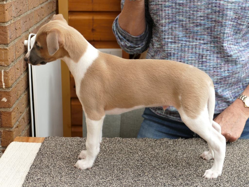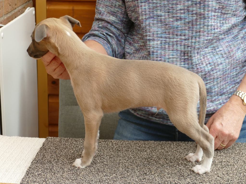 Fraaie Oida, voor de raskenners de fraaist gebouwde van het nest. Een ondernemende doener ten opzichte van zijn nestgenoten, die in zijn eentje toch een toontje lager blijkt te zingen. Hij gaat bij wonen bij whippet Flits, die voor deze uitgelaten jongen een stabiele oudere broer zal zijn.