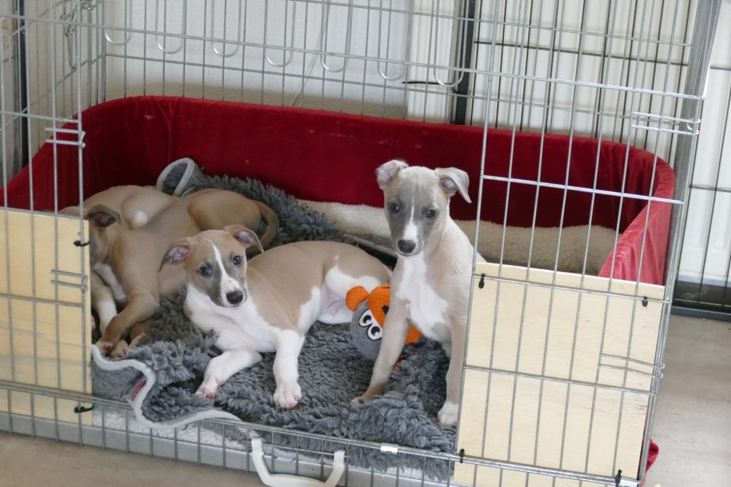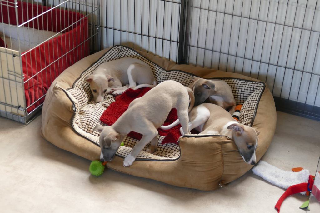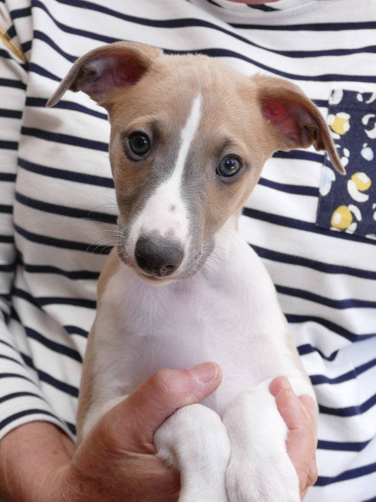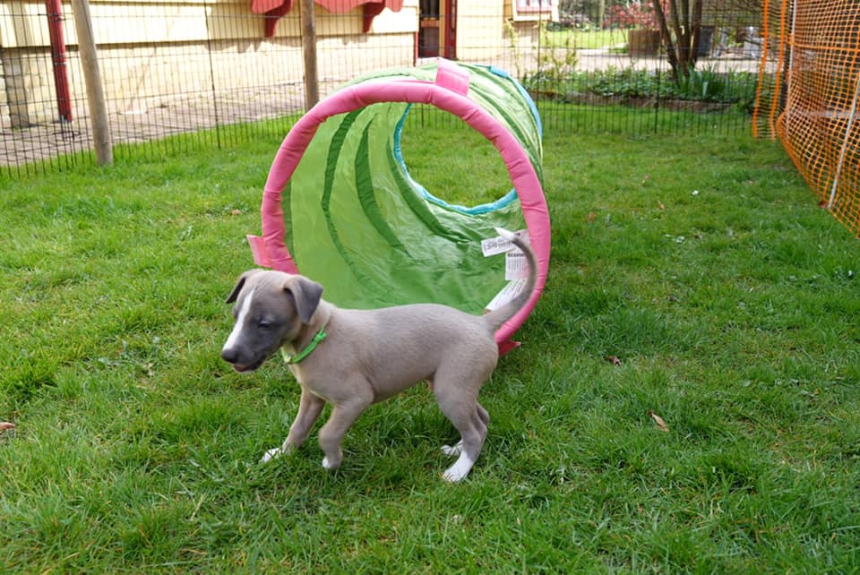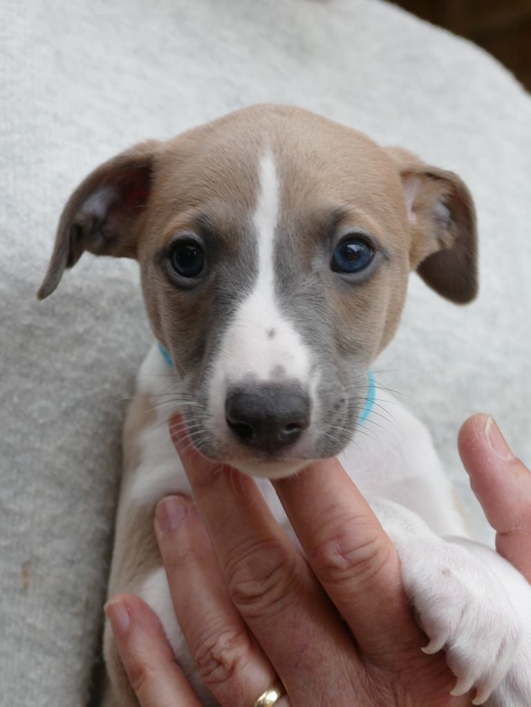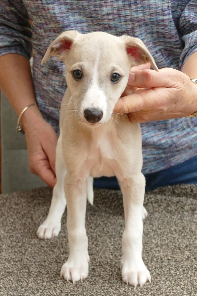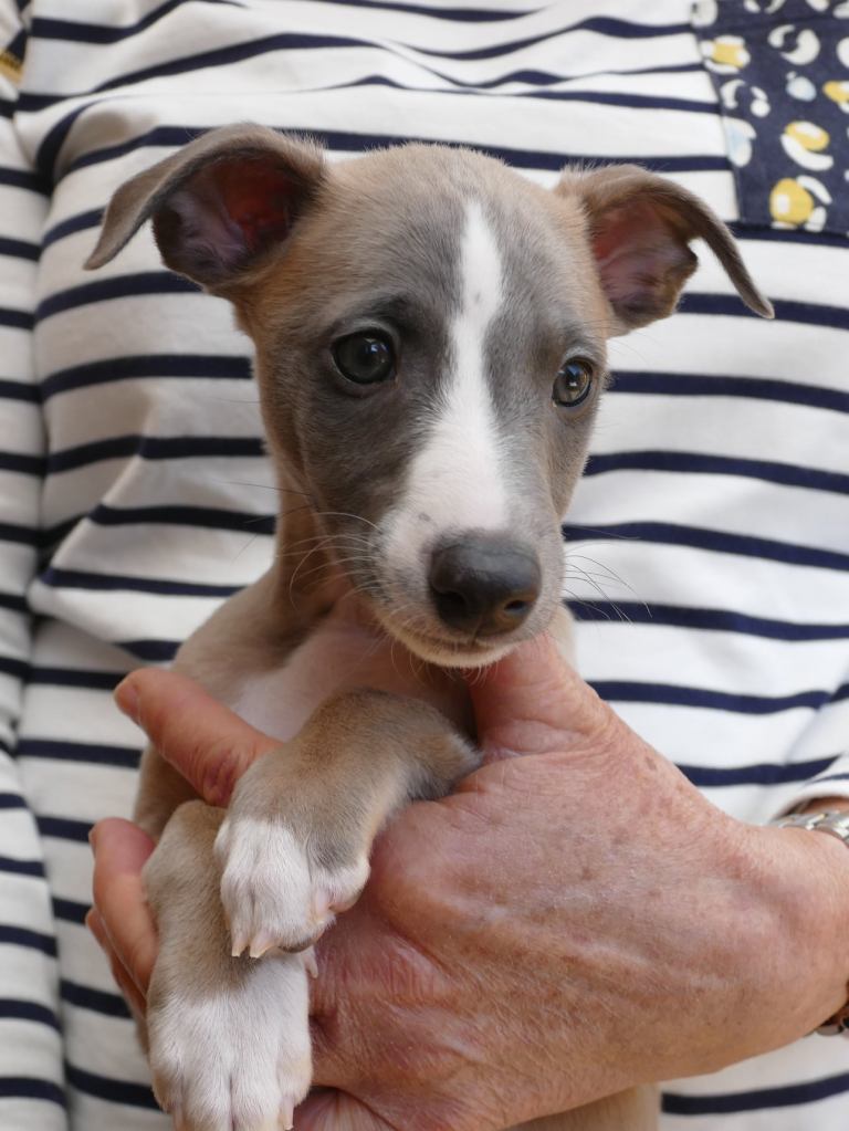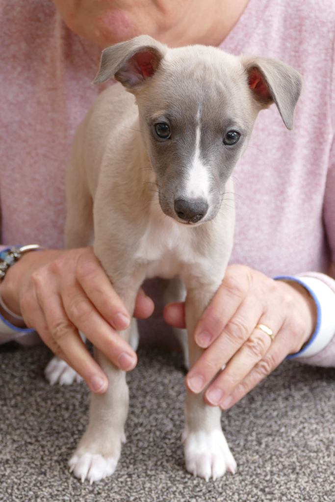 River met zijn zachte dromerige expressie. Hij doet echt wel mee, maar observeert alles goed voordat hij ervoor gaat. Stiekem mijn persoonlijke favorietje, alhoewel ze alle vier hele fijne pups zijn. Hij en Floyd gaan wonen bij de oudere whippet dame Lara, en omdat zij elkaar hebben hoeft zij niet verplicht een tweede jeugd in te gaan ;>)