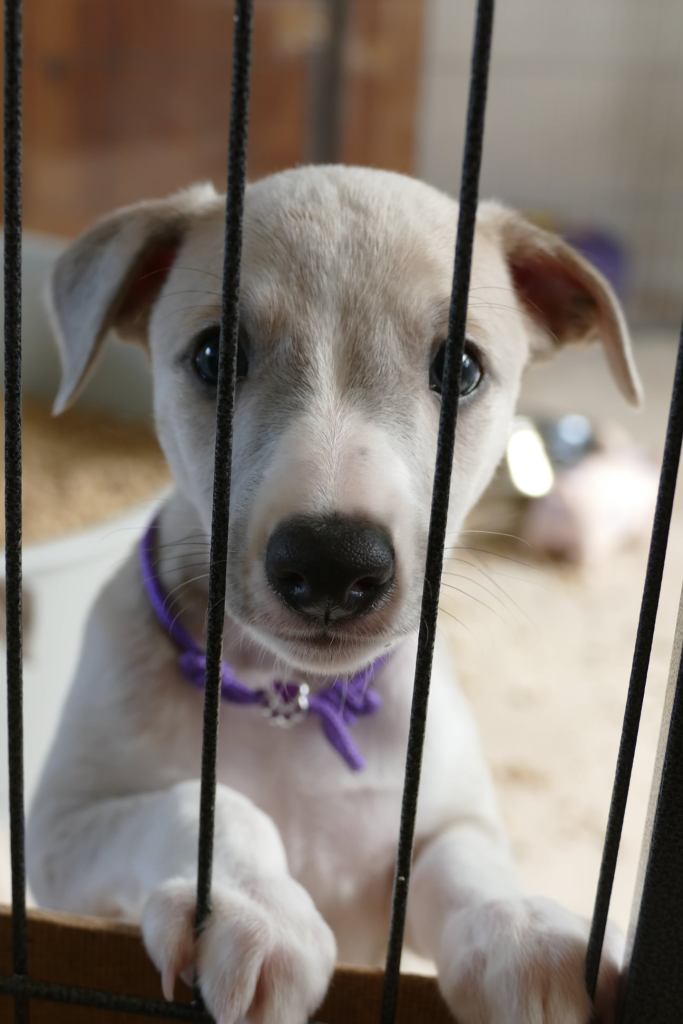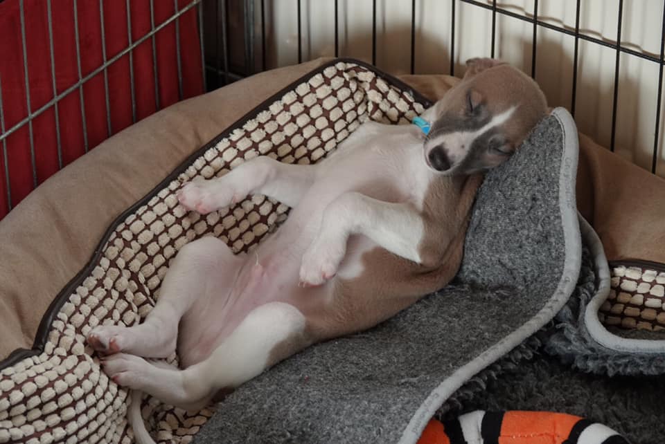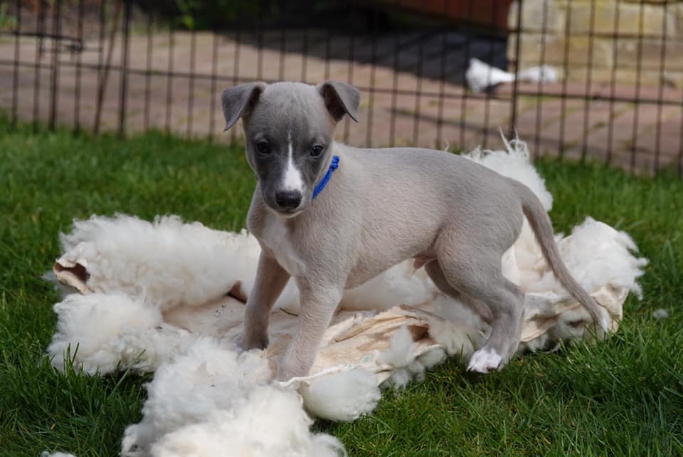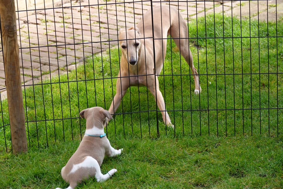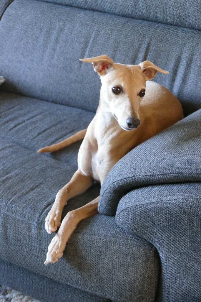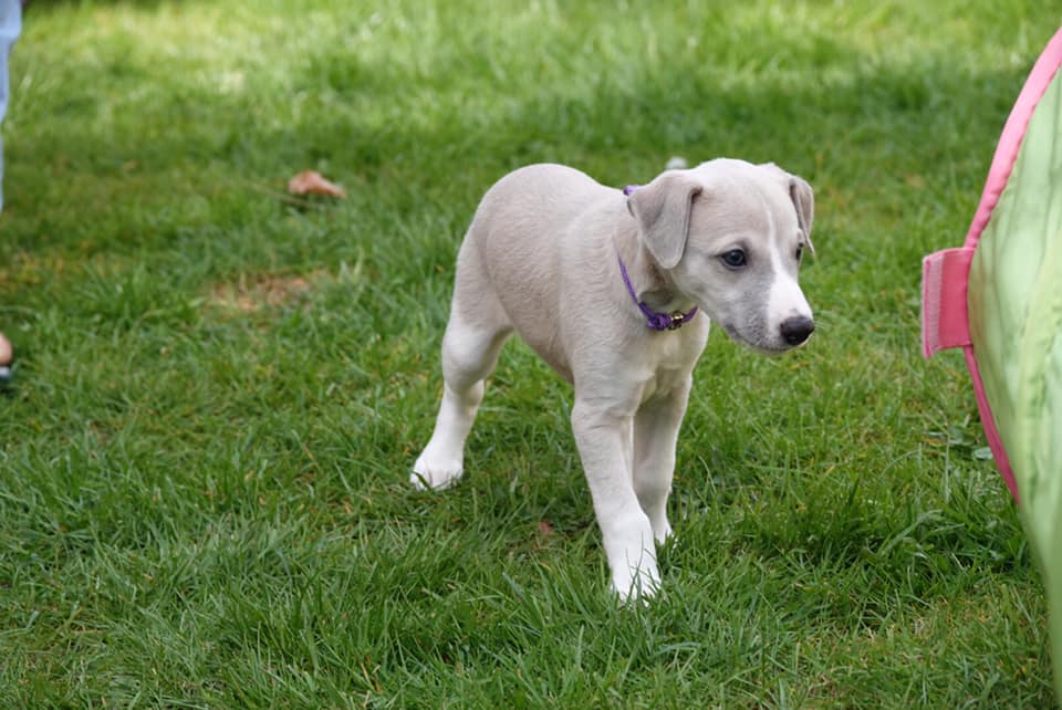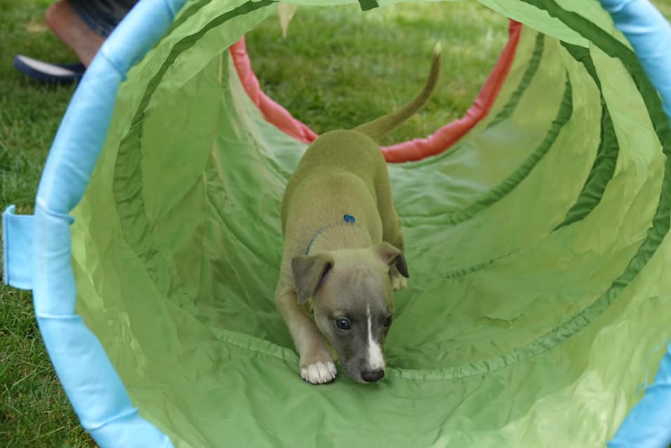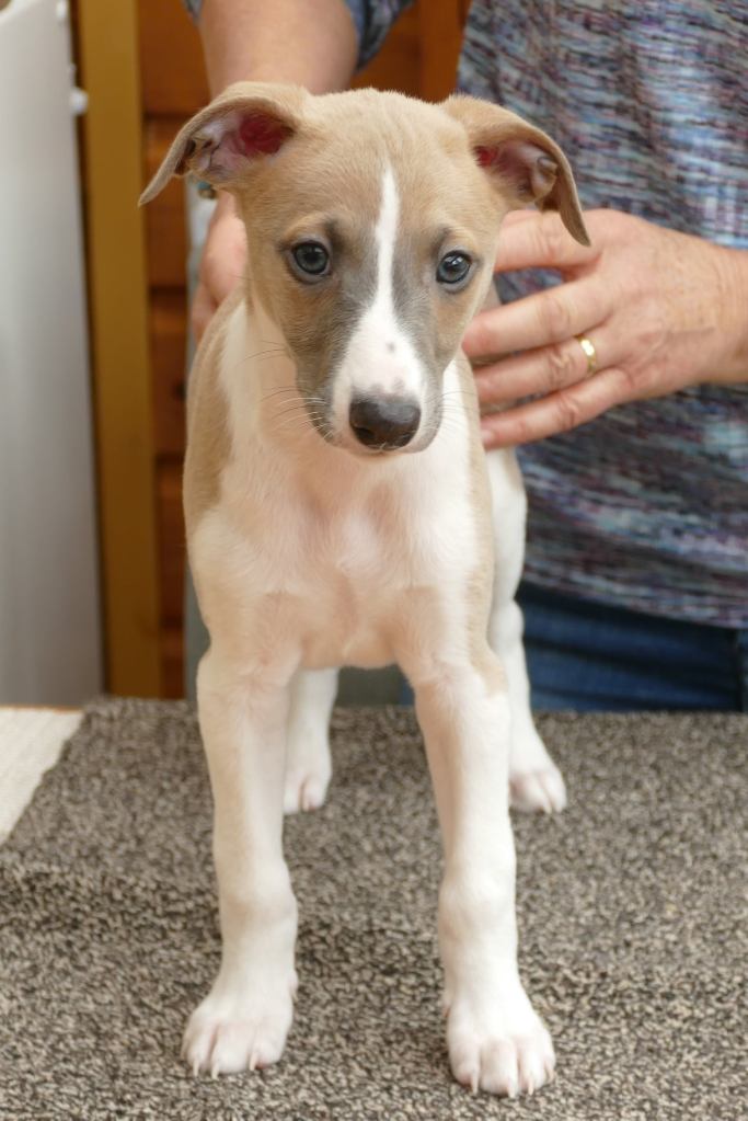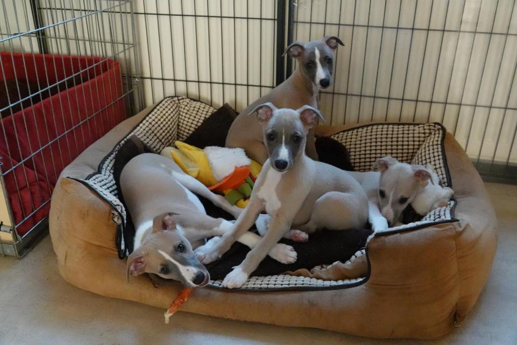 River met zijn zachte dromerige expressie. Hij doet echt wel mee, maar observeert alles goed voordat hij ervoor gaat. Stiekem mijn persoonlijke favorietje, alhoewel ze alle vier hele fijne pups zijn. Hij en Floyd gaan wonen bij de oudere whippet dame Lara, en omdat zij elkaar hebben hoeft zij niet verplicht een tweede jeugd in te gaan ;>)