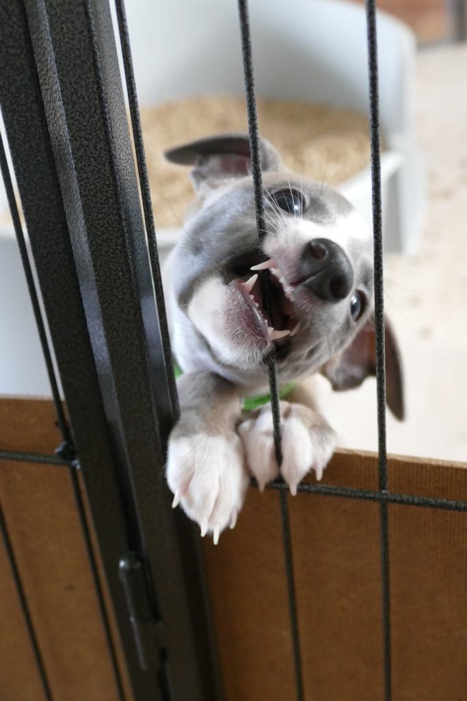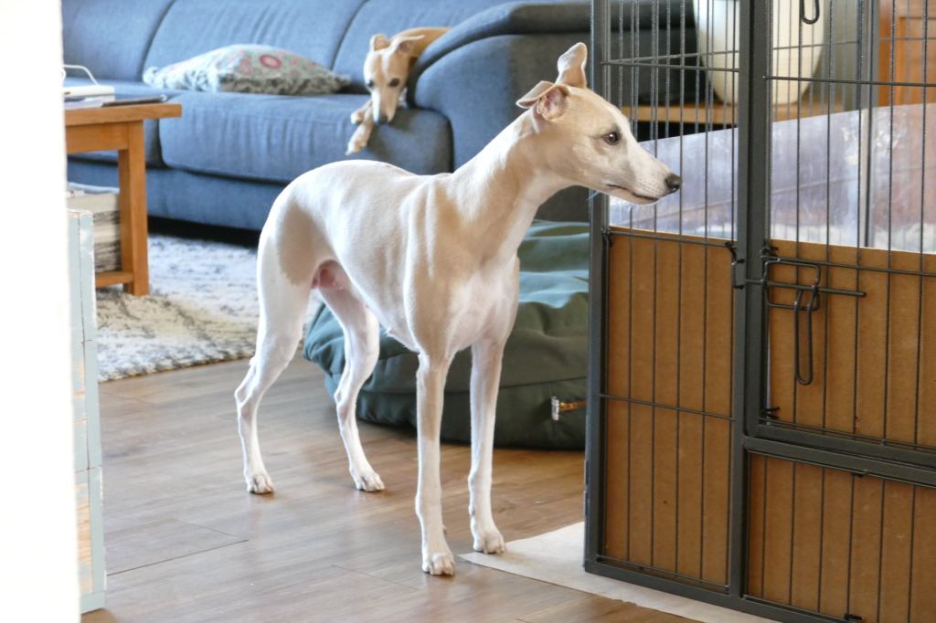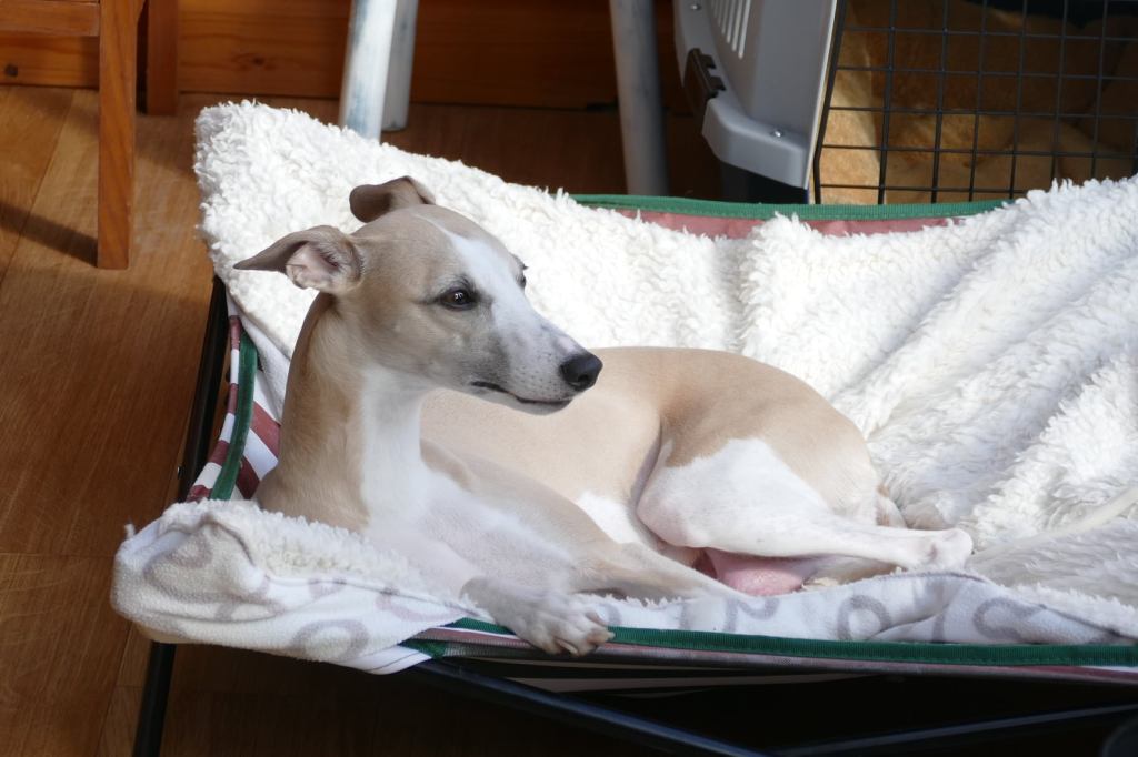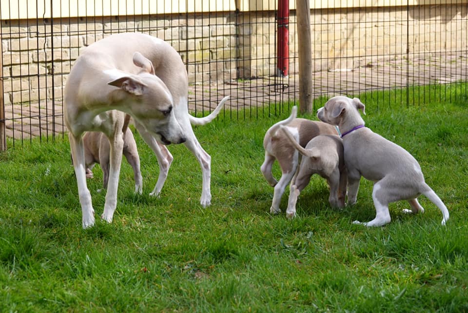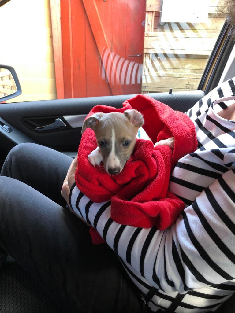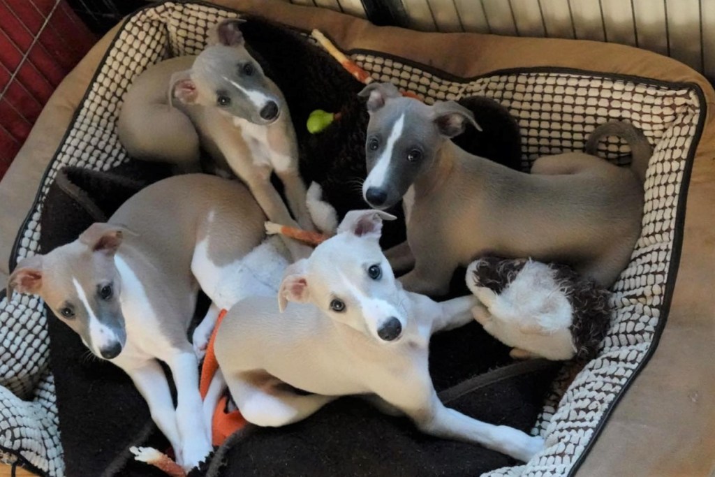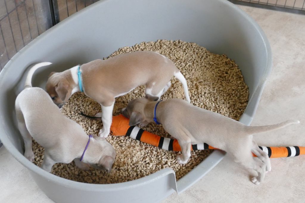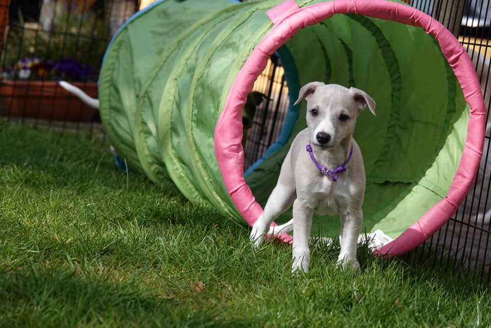 River met zijn zachte dromerige expressie. Hij doet echt wel mee, maar observeert alles goed voordat hij ervoor gaat. Stiekem mijn persoonlijke favorietje, alhoewel ze alle vier hele fijne pups zijn. Hij en Floyd gaan wonen bij de oudere whippet dame Lara, en omdat zij elkaar hebben hoeft zij niet verplicht een tweede jeugd in te gaan ;>)