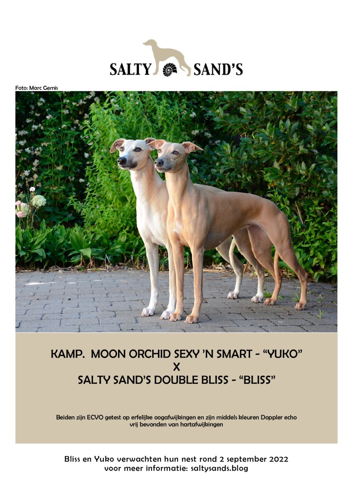 Beiden zijn gefokt uit showlijnen maar hebben ook de jachtpassie die bij ons ras hoort, waarbij Yuko officieel aan coursing wedstrijden deelneemt en daarin net zo succesvol is als in de showring. Bliss vindt het fijn als ze eindelijk weer eens naar coursingtraining mag, wat helaas bij ons niet om de hoek is.